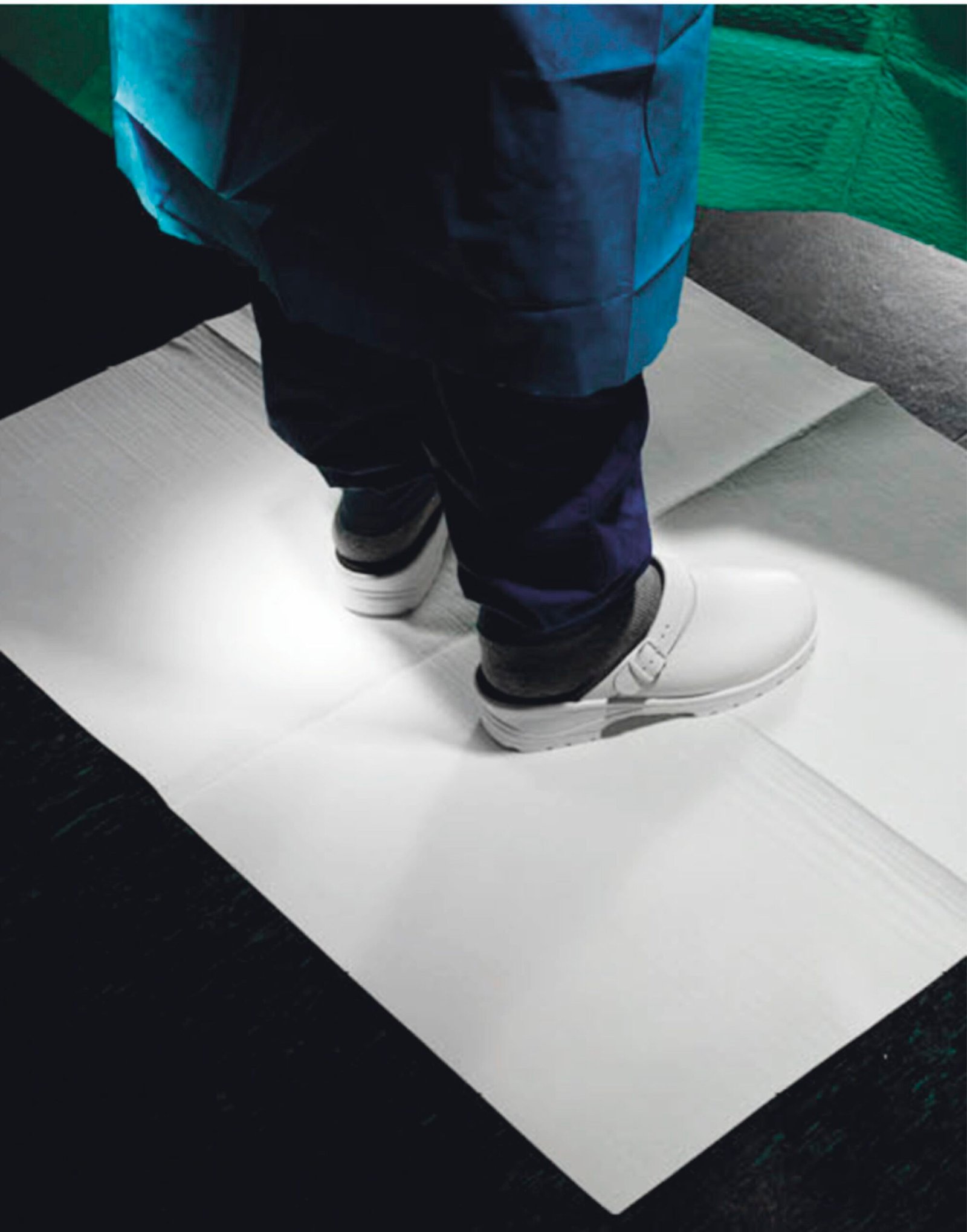 A hybrid composite of 120 gsm with high absorbency for use in operation theatres floors. Can be made with ultra economy or with superior comfort and anti slip bottom
